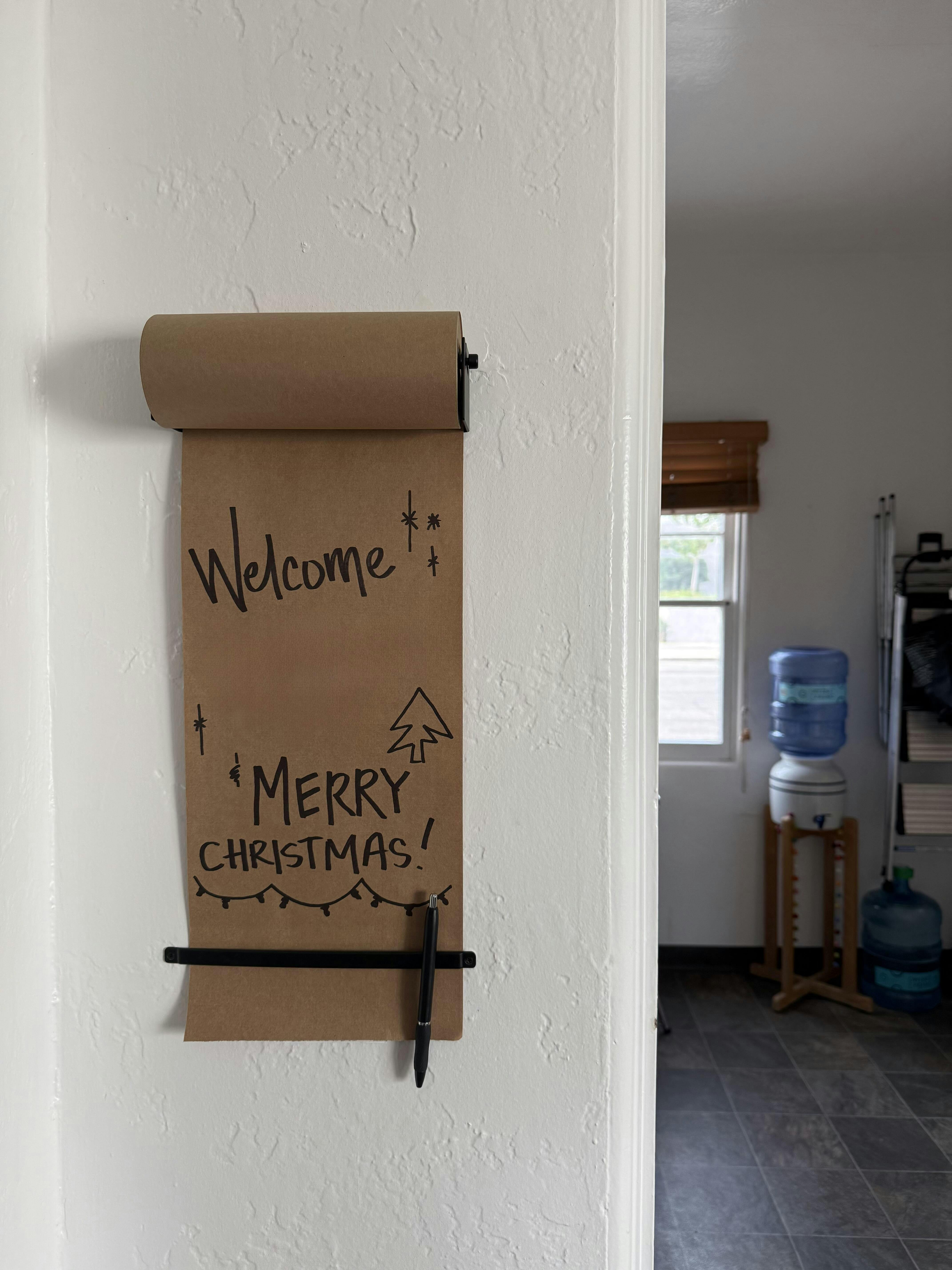 This George & Willy wall-mounted paper roller is a playful way to display your ideas. With this creative paper roll holder, the kraft paper can be rolled down and secured under the metal bar, then neatly torn off when it’s time for new ideas. We like using both kraft and butcher's paper, but our Studio Roller is compatible with all paper rolls.